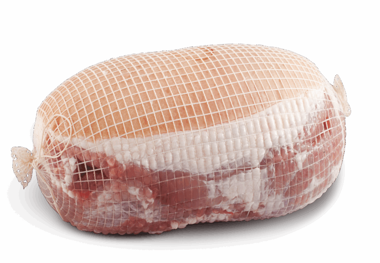 Lähipossun valmiiksi suolattu kinkkurulla. Täysin luuton kinkku verkossa, kokonaista paistia.