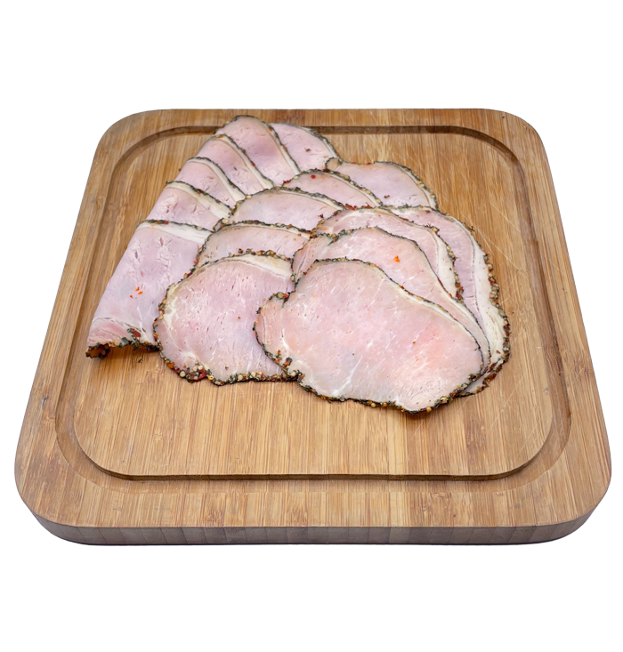 Suomalainen porsaan ulkofile, vesi, suola, stabilointiaineet (E450, E451), mausteet (sinapinsiemen, paprikarouhe, valkopippuri, kirveli), glukoosi, hapettumisenestoaine (E316), säilöntäaine (E250).